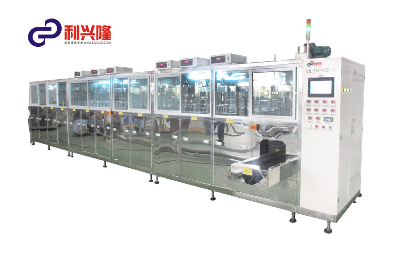 多槽式超聲波清洗機清洗工件就是通過超聲波發(fā)出的頻率讓清洗液產生空化效應,從而加速溶解和剝離被清洗工件上灰塵、油脂等污垢,所以選擇合適的超聲波頻率也能提高清洗的效果。 例如,使用水或水清洗劑時由空化作用引起的物理清洗力需要使用低頻超聲波;對小間隙、狹縫、深孔的零件清洗高頻超聲波效果更好。
